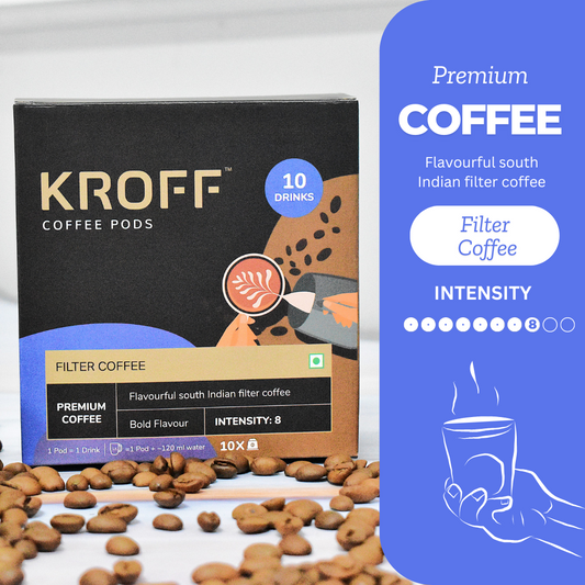 KROFF South Indian Filter Coffee Pods | Coffee-Chicory blend with Creamy Milk | 10 Pods Per Box | Dolce Gusto Compatible