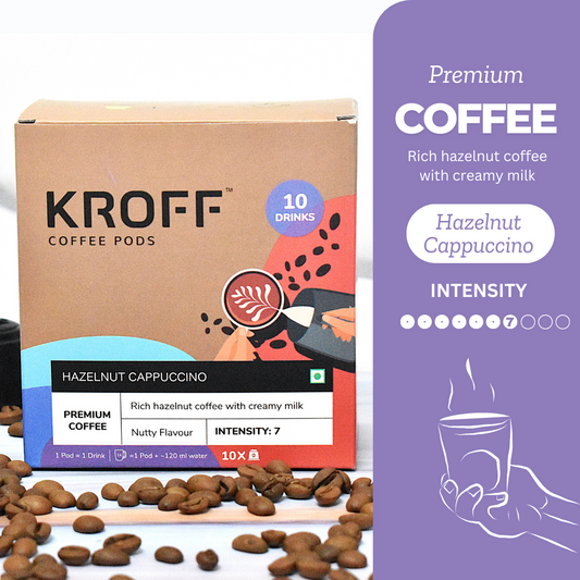 KROFF Hazelnut Cappuccino Coffee Pods | Rich Hazelnut Coffee with Creamy milk | 10 Pods Per Box | Dolce Gusto Compatible