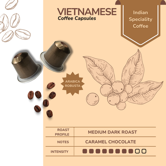 KROFF Vietnamese Coffee Capsule | Medium Dark Arabica Robusta Blend Roast | Remarkable Taste | 10 Pods Per Box | Nespresso Compatible Coffee Pods